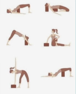 Estabiliza el cuerpo durante algunas posturas. Al practicar la posición de “sentado”, por ejemplo, el bloque funciona como un soporte debajo de los glúteos para conseguir alivio en las caderas y que esta quede por encima de la rodillas.